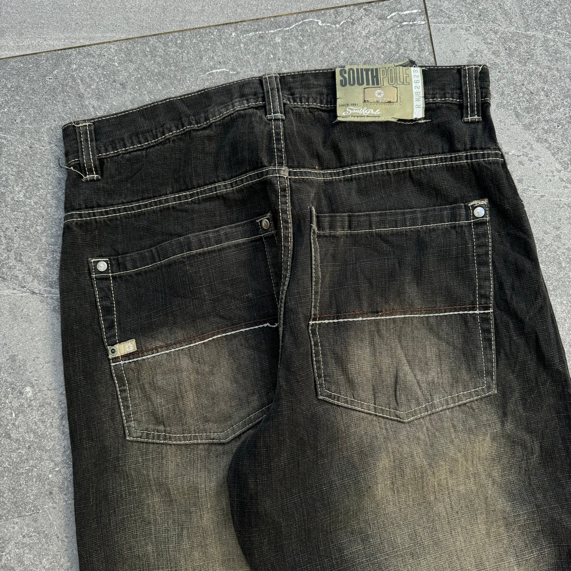 - measures 34x30”, baggy fit